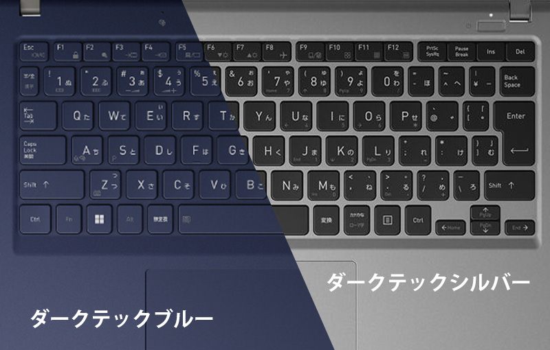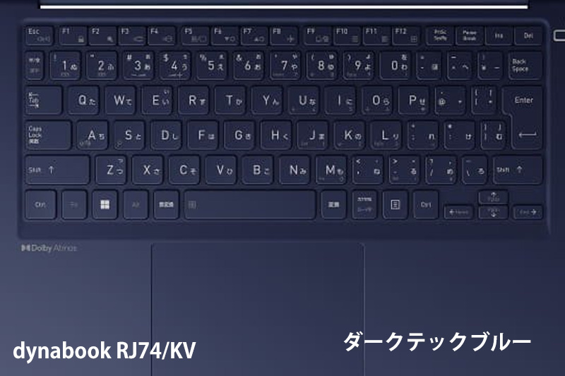 キーボードの互換モデルとしてdynabook RJ74シリーズがありますが、これもダークテックブルーですので基調カラーは同じです。