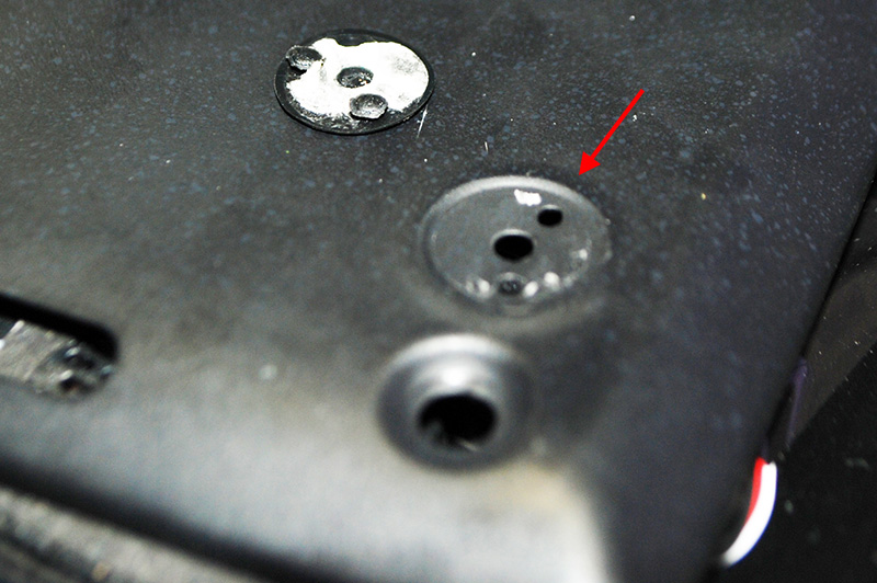 これがG83/HSの接着面なのですが、ゴム足の凹凸がないので、横ずれ起こすでしょ。横ずれのガードが中央の穴(突起)だけなんです。