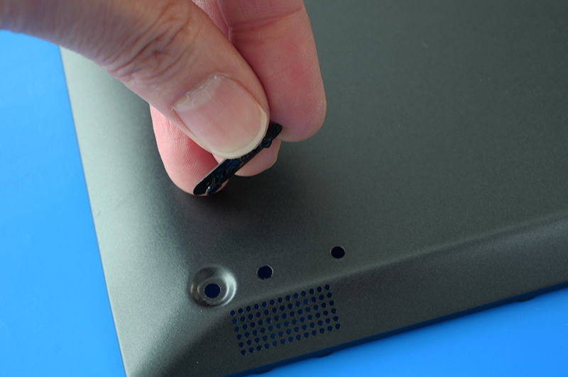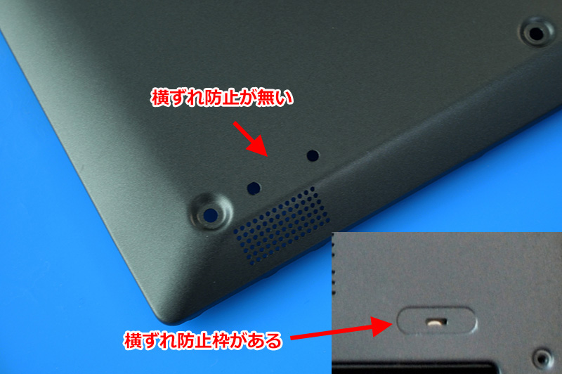 普通のゴム足であれば「横ずれ防止枠」がありますので、シール剥がして貼って終わりですが、この機種は横ずれ枠が無いので両面だけで固定できないのです。