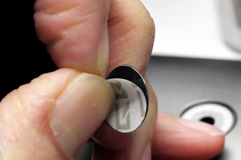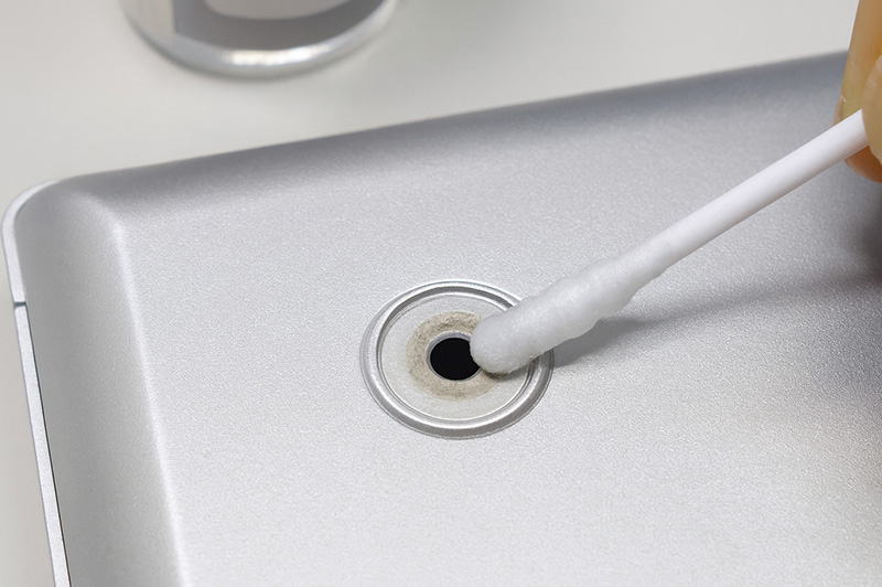 残骸の糊をきれいに剥がします。先ほどの100円ショップで売っているシール剥がし液で糊の部分をきれいにします。仕上げにアルコールでふき取ってください。