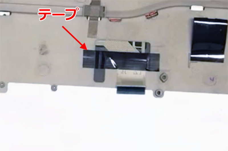 ポイントはマザーボード下のキーボードケーブルテープが貼ってあります。