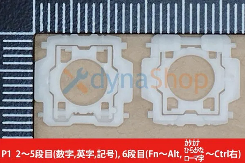 キートップは「かな表記無し」のシンプルキーボードがありますので、サイズが同じと思いますので、それが使えると思います。