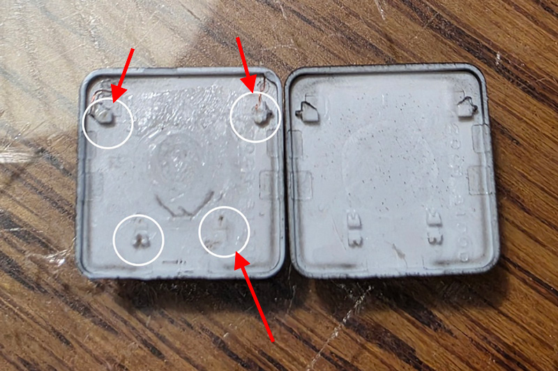御覧のようにキートップのロック爪が破損しています。