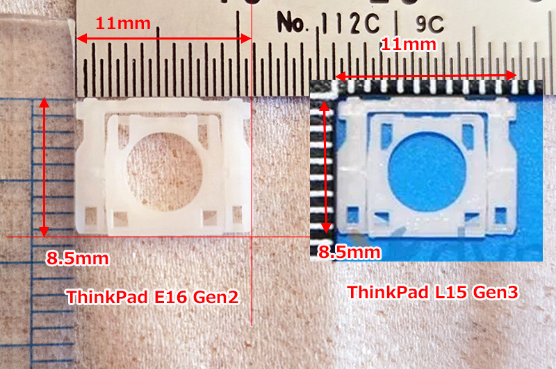 L15 Gen3 とE16 Gen2 のファンクションのパンタグラフはほぼ同じなのですが、HPの方が穴の大きさが微妙に異なります。