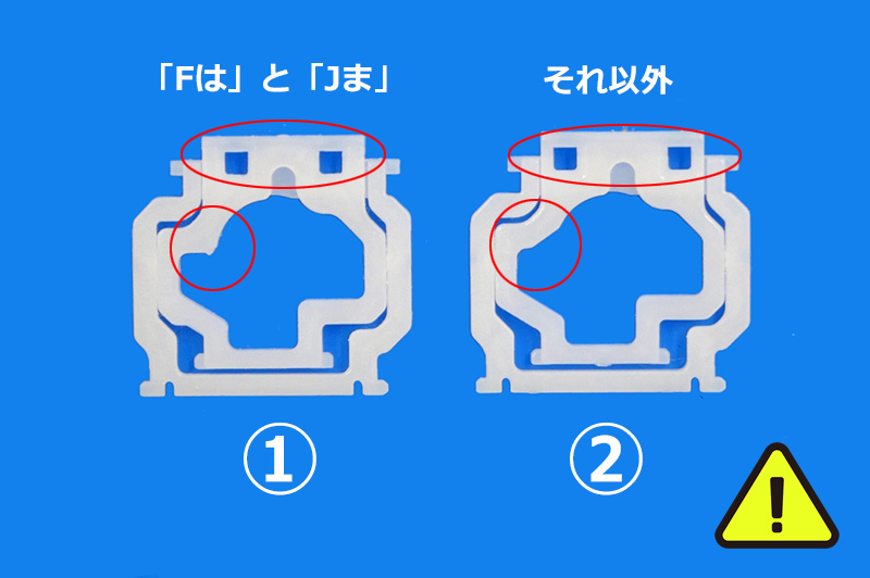 アルファベットキーのパンタグラフが下記形状のものは「Fは」と「Jま」の部品だけパンタグラフが異なります。